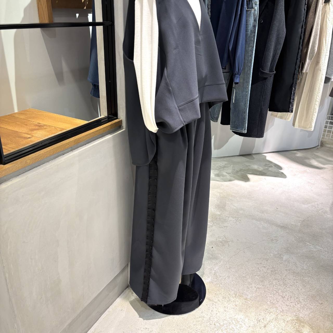 同素材のパンツと合わせれば