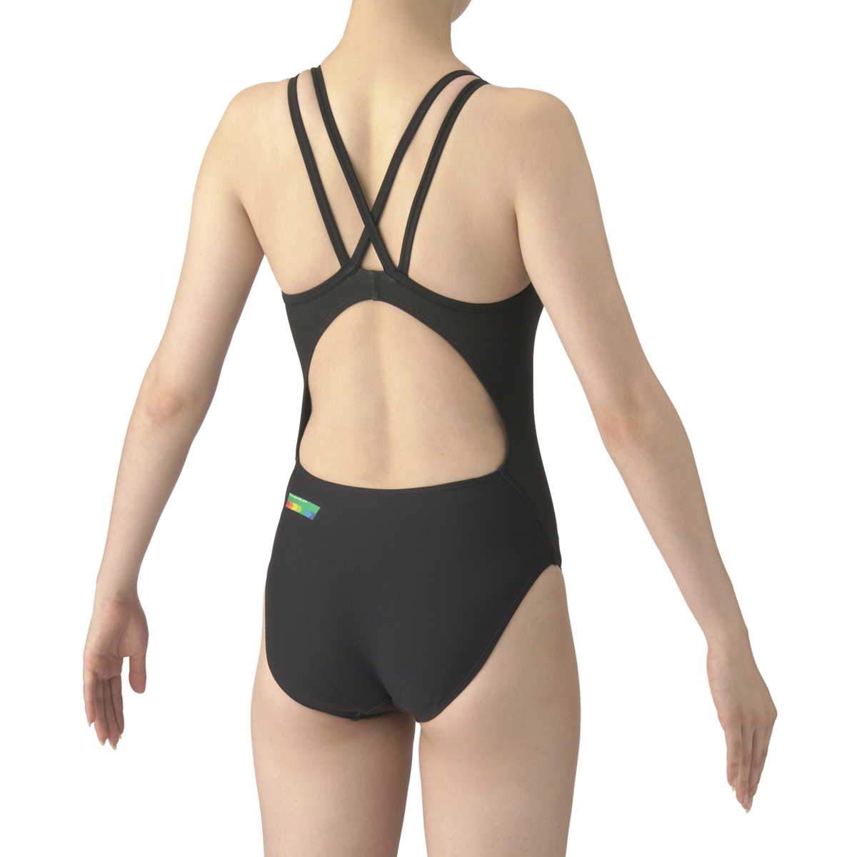 背中を大きくあけたオープンバックタイプで、水抜けがよく、泳ぎやすい。