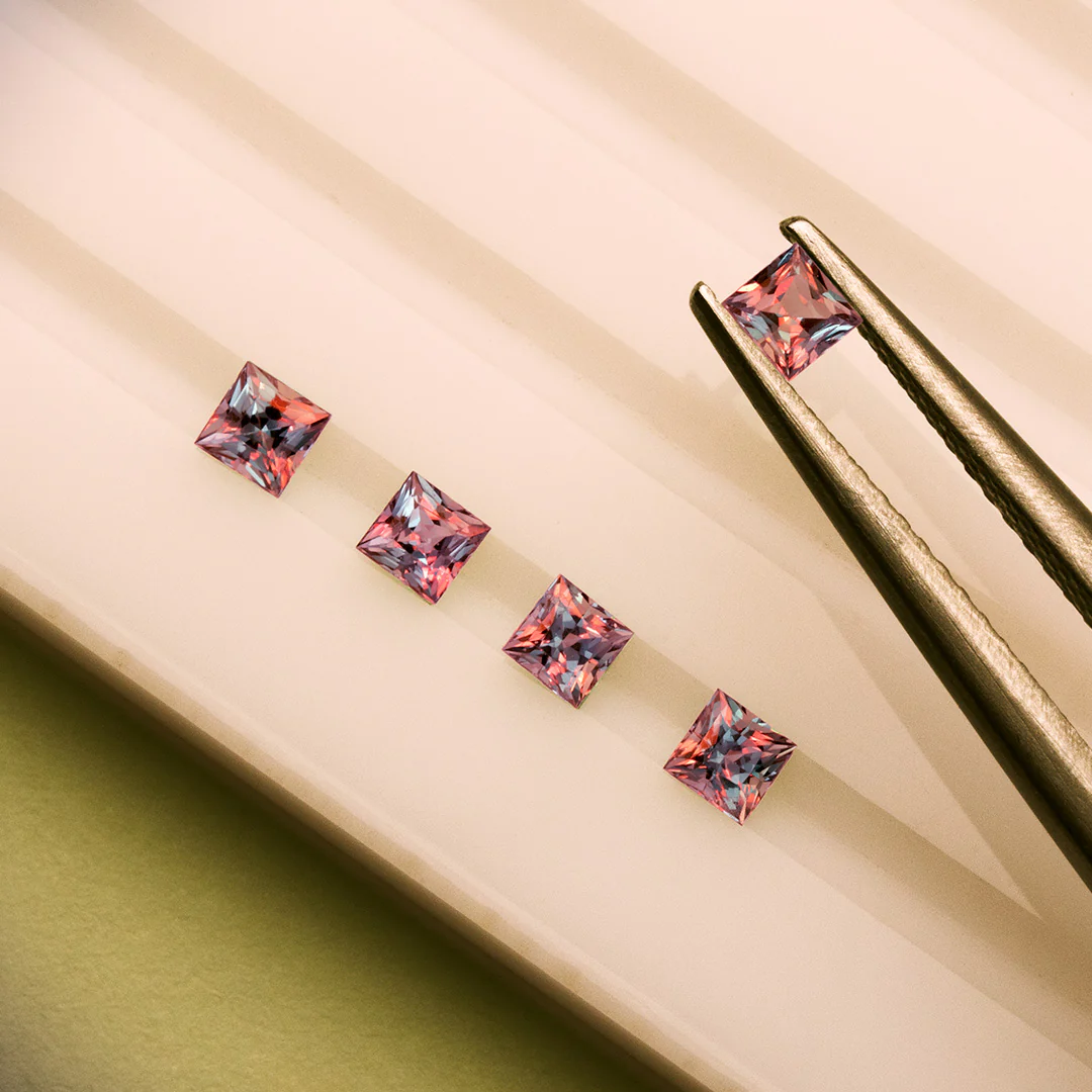 そのドラマティックな魅力を伝えたくて、発色と透明感を兼ね備えた希少なプリンセスカットのルースを厳選しました。