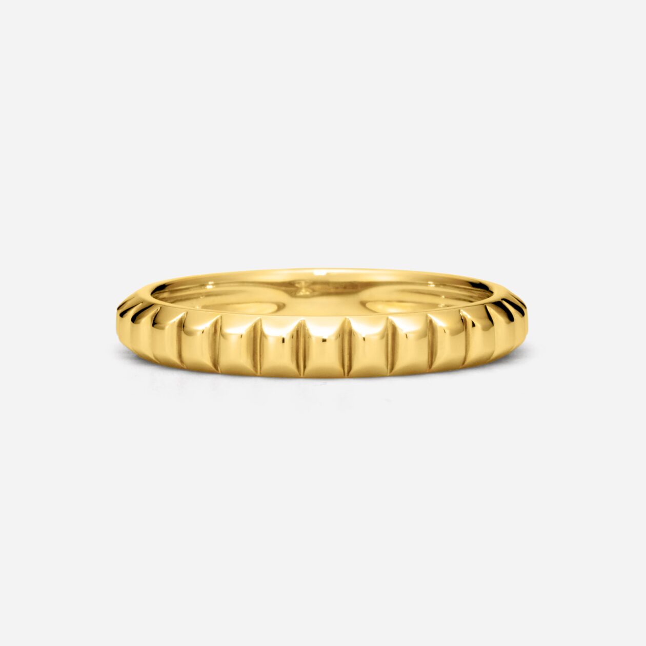 約3ミリ幅の中に凝縮された地金の厚みが、端正で上質な趣を醸します。