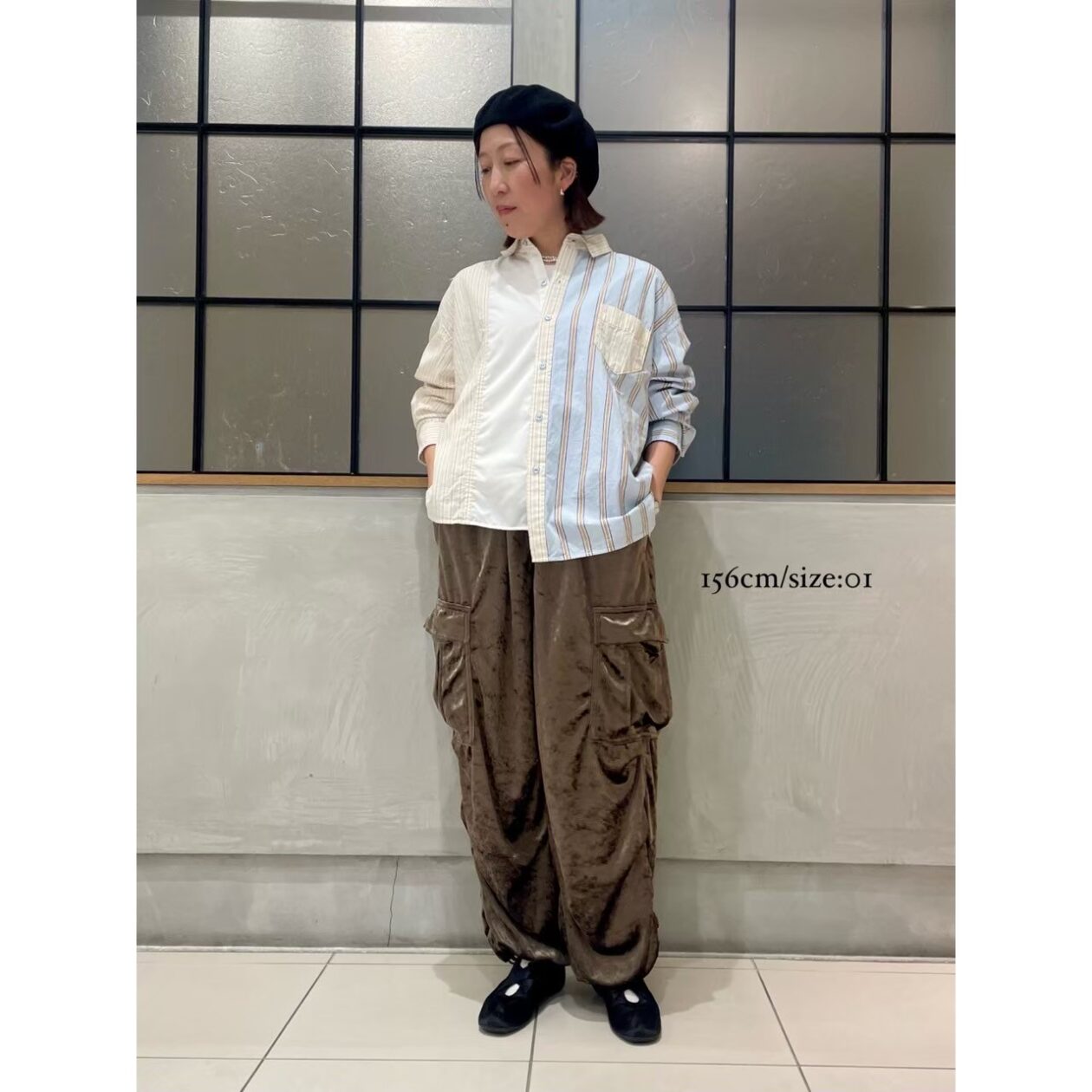 アシンメトリーなデザインとピッチの違うストライプ使いが目を惹きます。