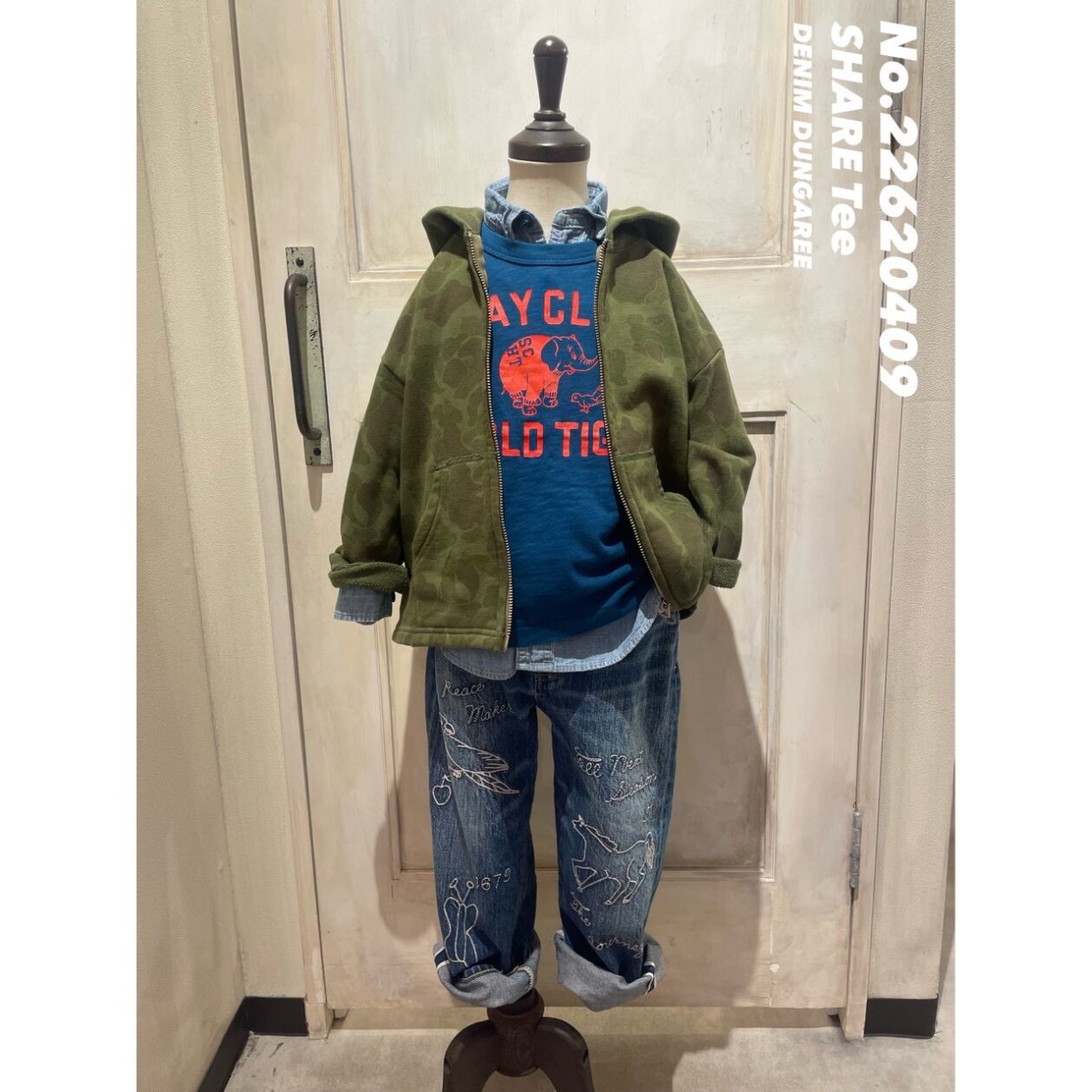 ショップでは「デニム」から広がる、着心地の良さと、USED加工など、ヴィンテージのディテールを細部までこだわり、大人顔負けのキッズウェアを展開。子供服ながら豊富なサイズ展開とアイテムを取り揃えています。