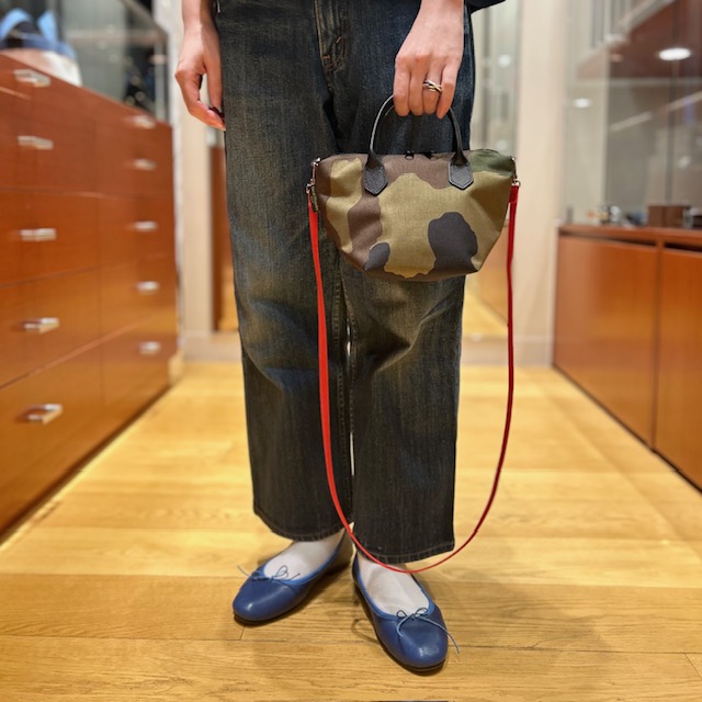 レザーハンドルとファスナーの仕様のミニバッグが入荷しました。