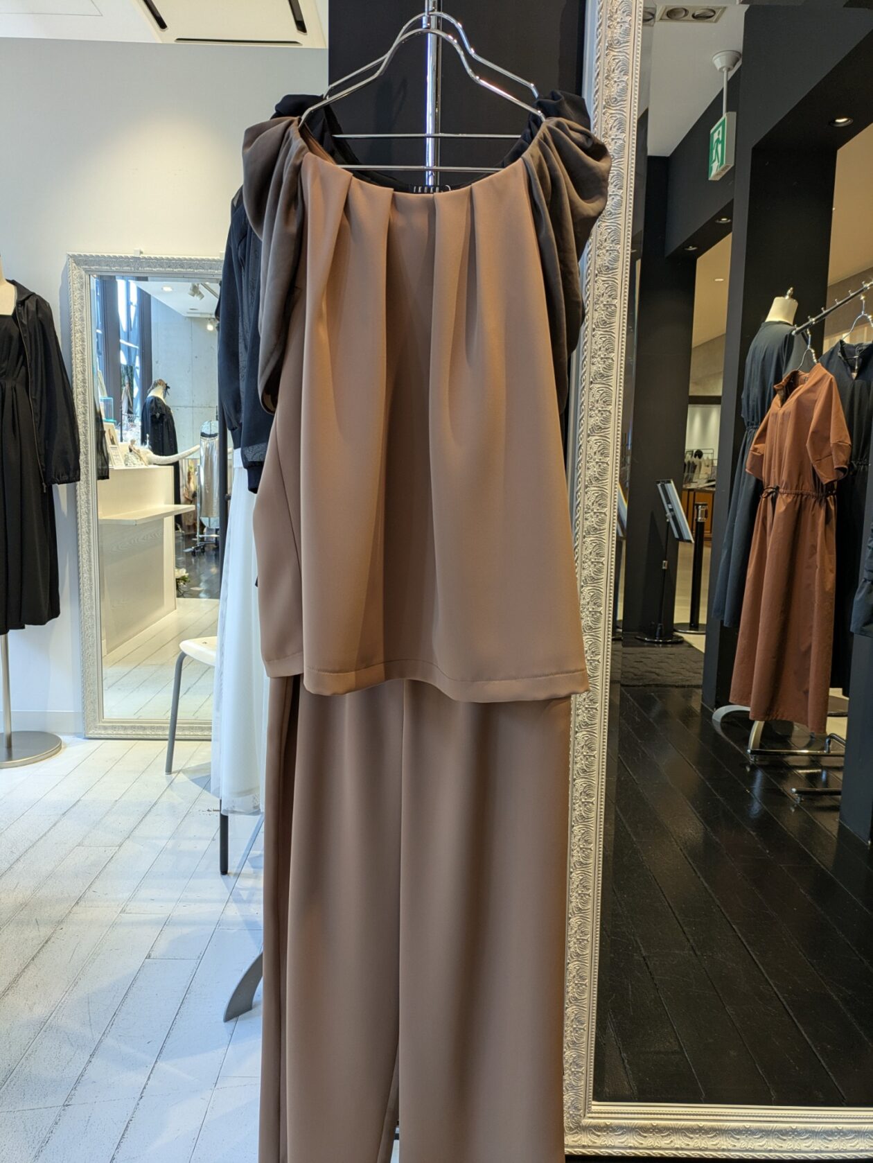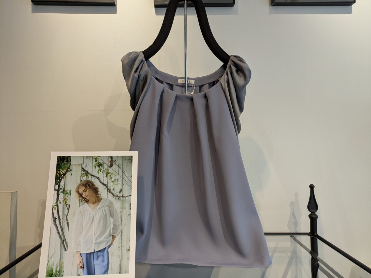 袖を触り心地の良いサテン生地で切り替えたトップスです