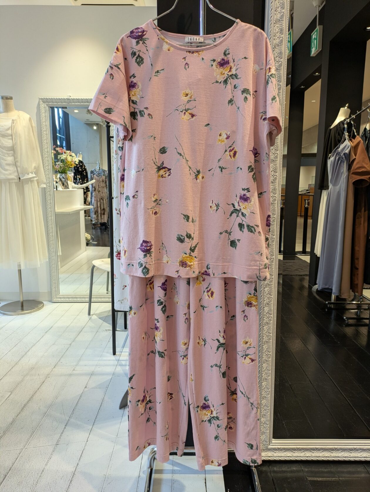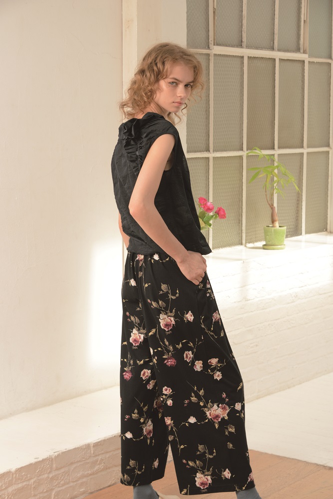 ワンピースと同じ素材でフルレングスのワイドパンツです ギャザーが効いていて流れるようなシルエットが特徴的です