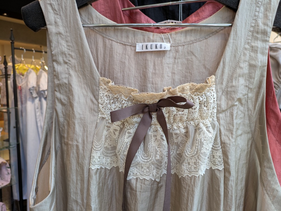 IKUKOらしい胸元のレースとリボンが特徴的なエプロンです