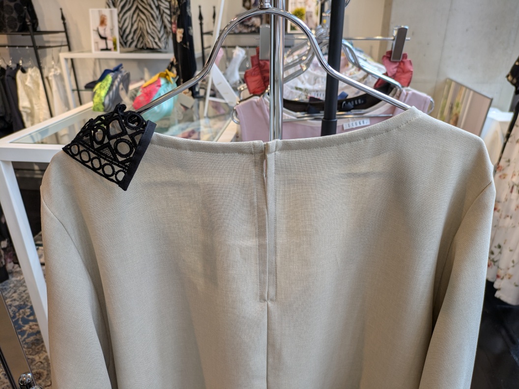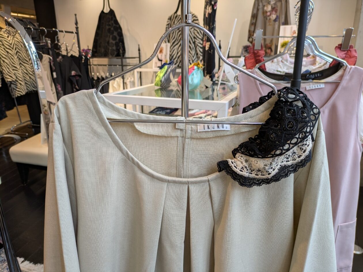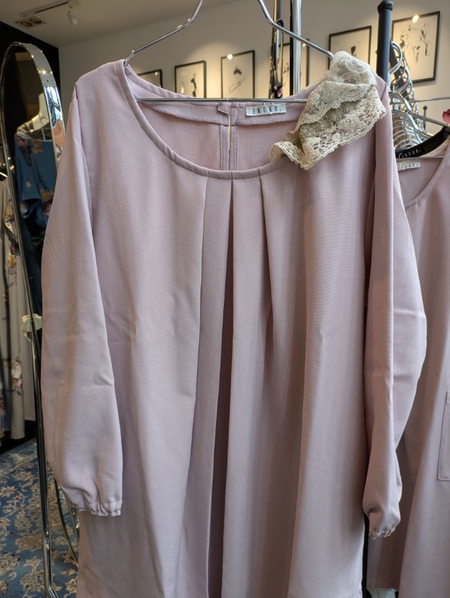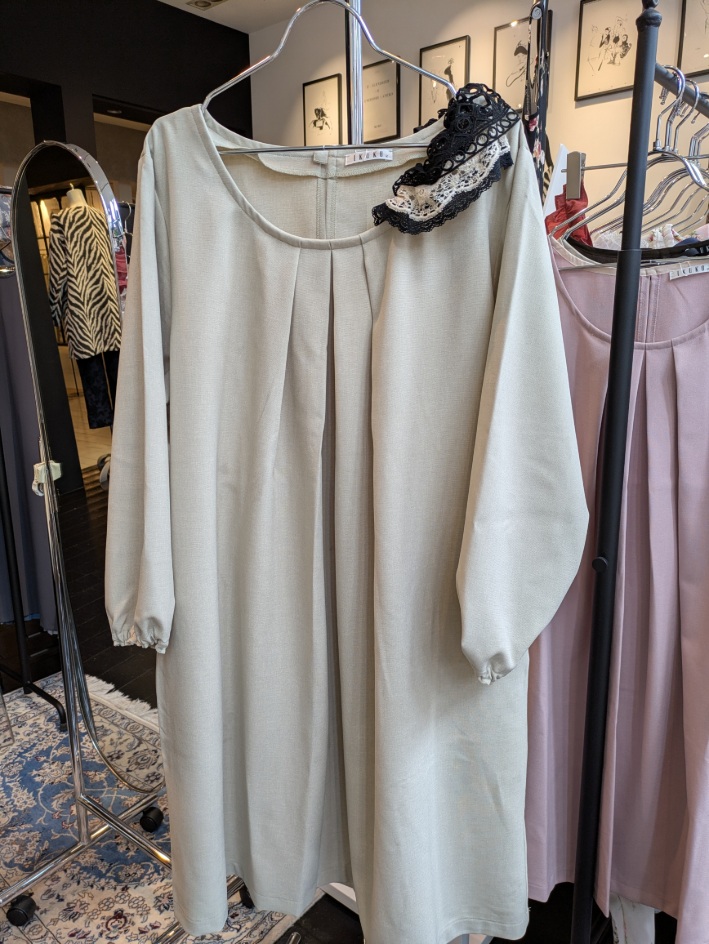 胸元から綺麗なドレープがでていますカラー:サンドベージュ スモーキーピンク コーヒー