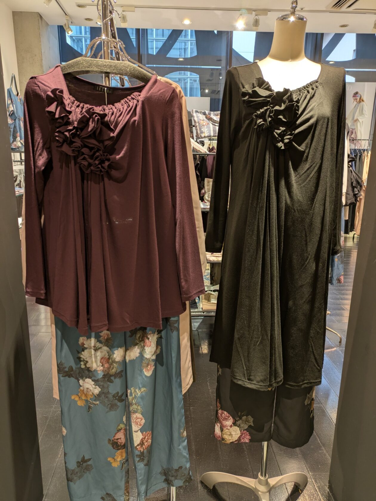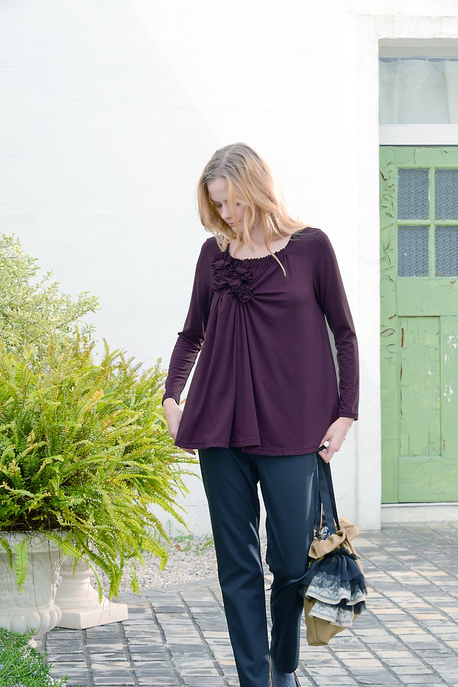 ワンピースと同素材のトップスです コサージュ調のデザインから流れるドレープが美しい