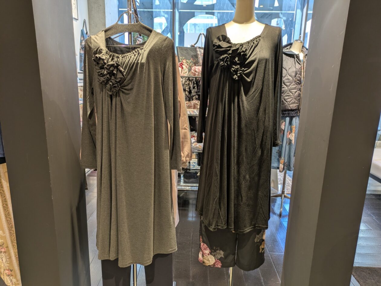 リラックスできます 胸元のコサージュが華やかで上品さを備えたワンピースです