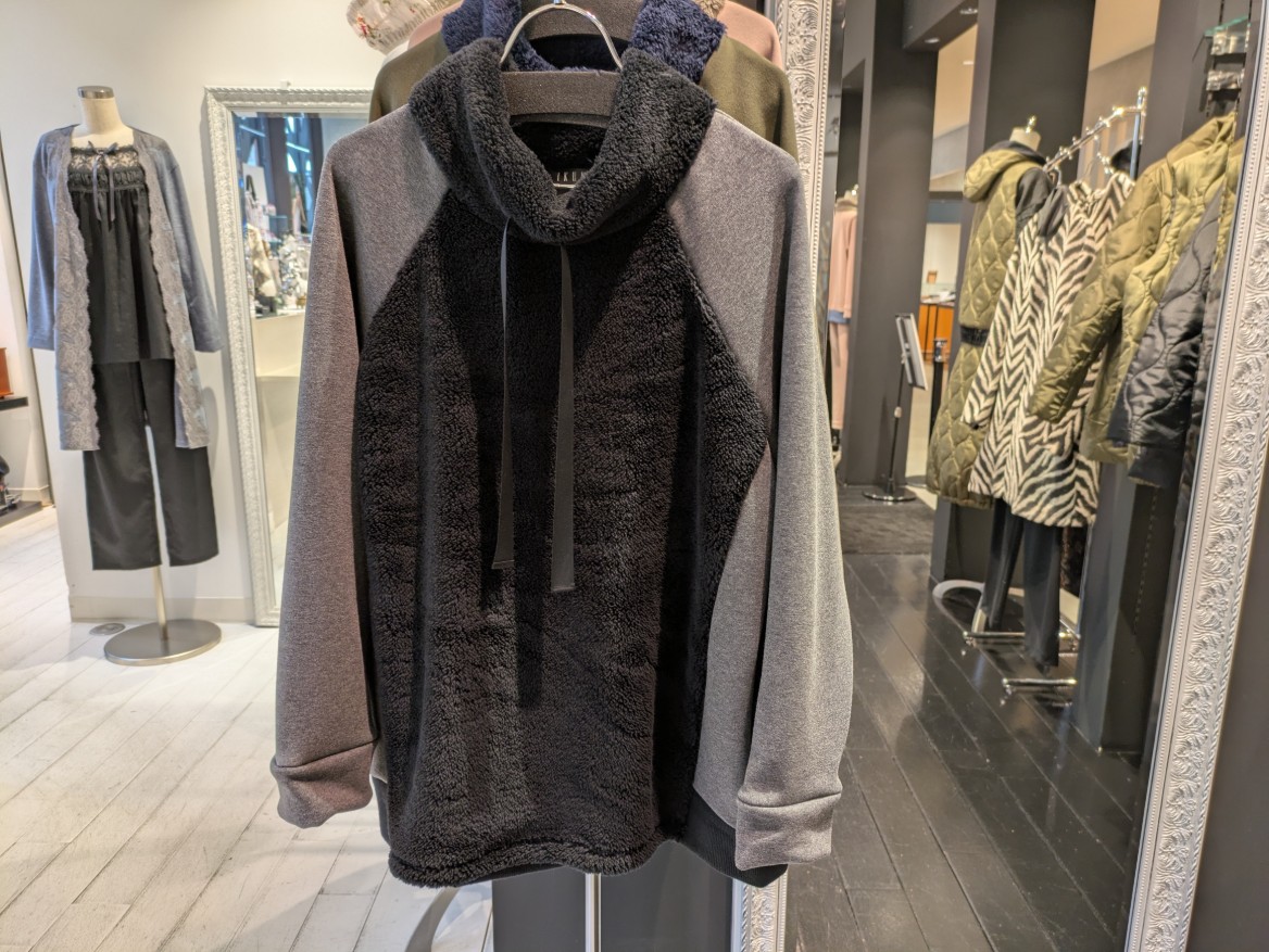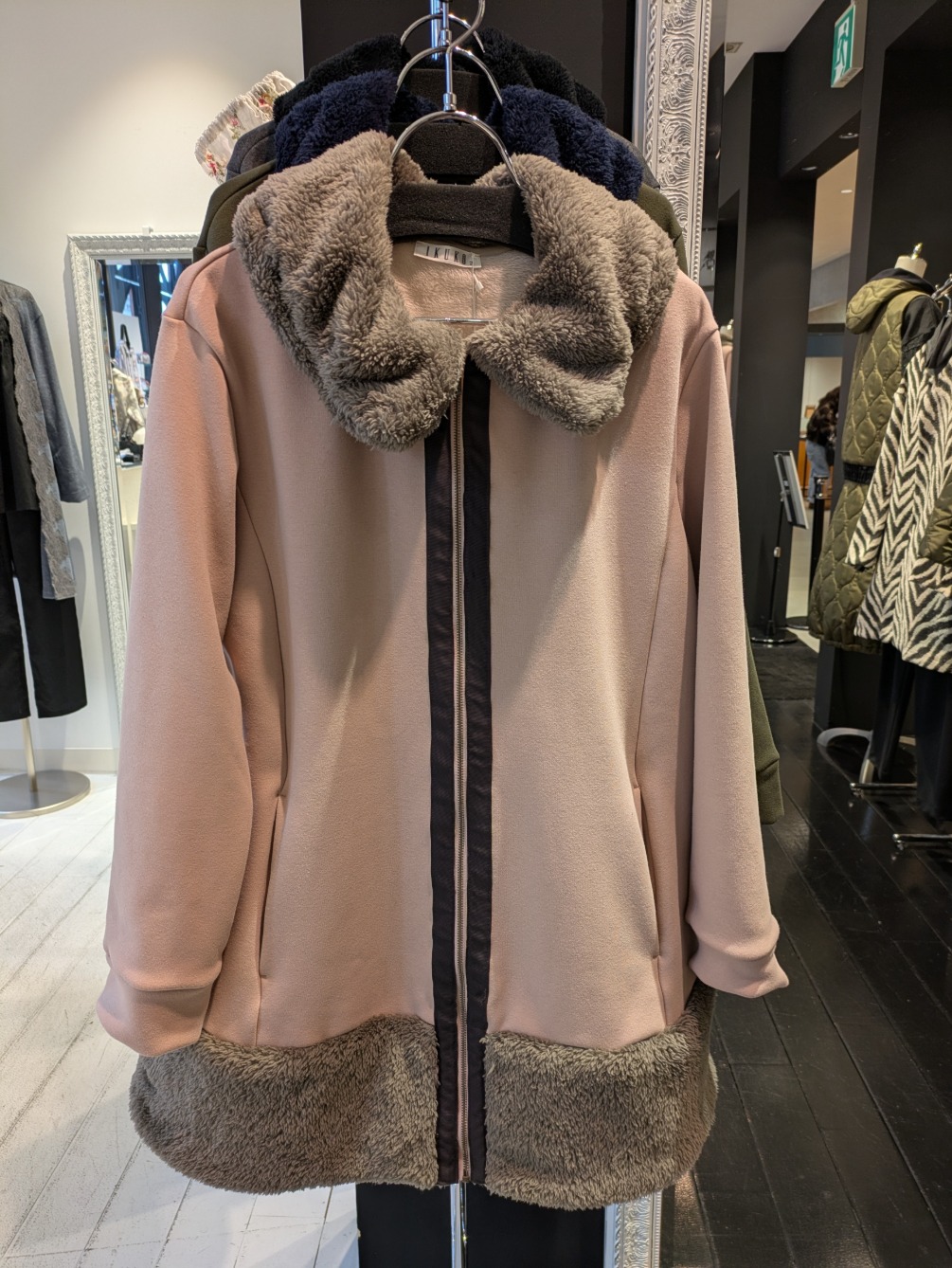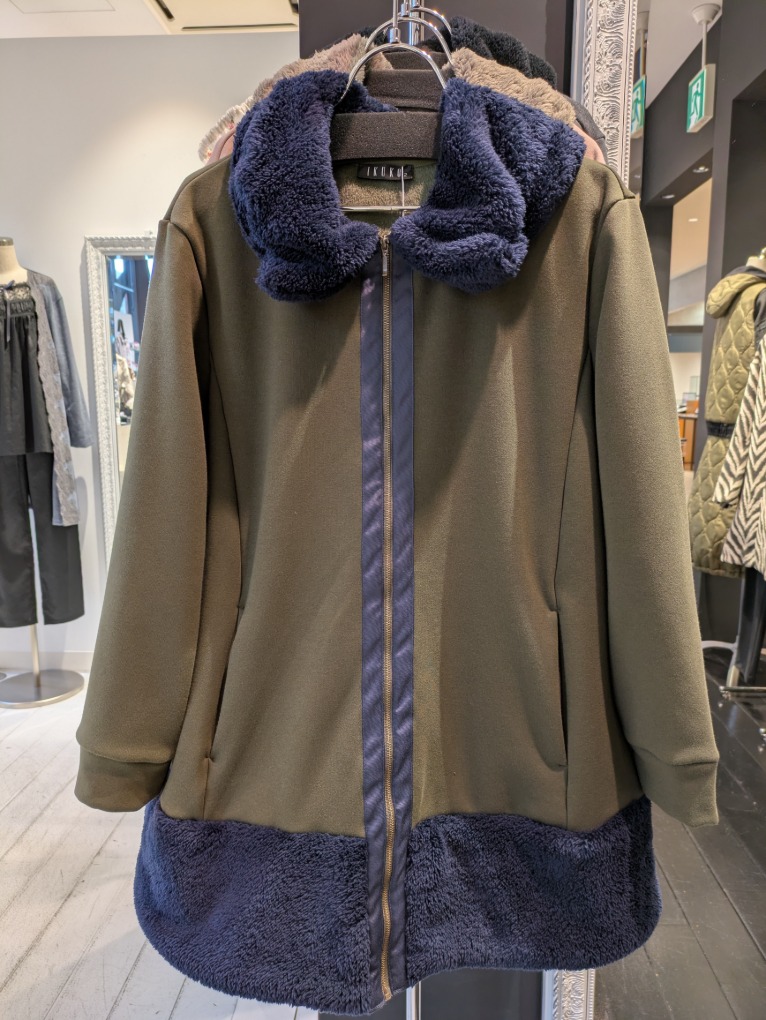 シープボア素材の襟で首まわりを暖かくしてくれます 襟と裾のボアがアクセントの羽織物です