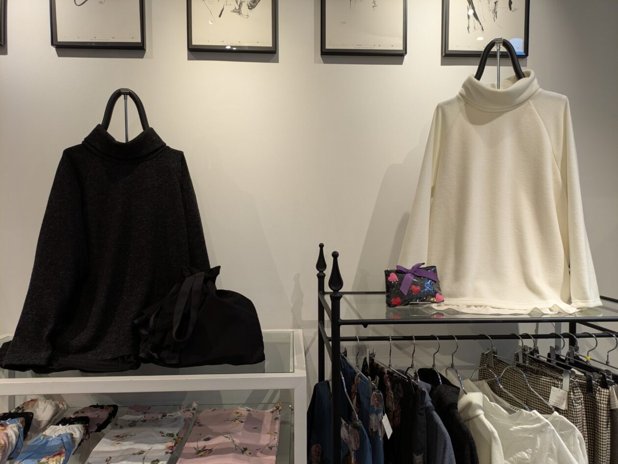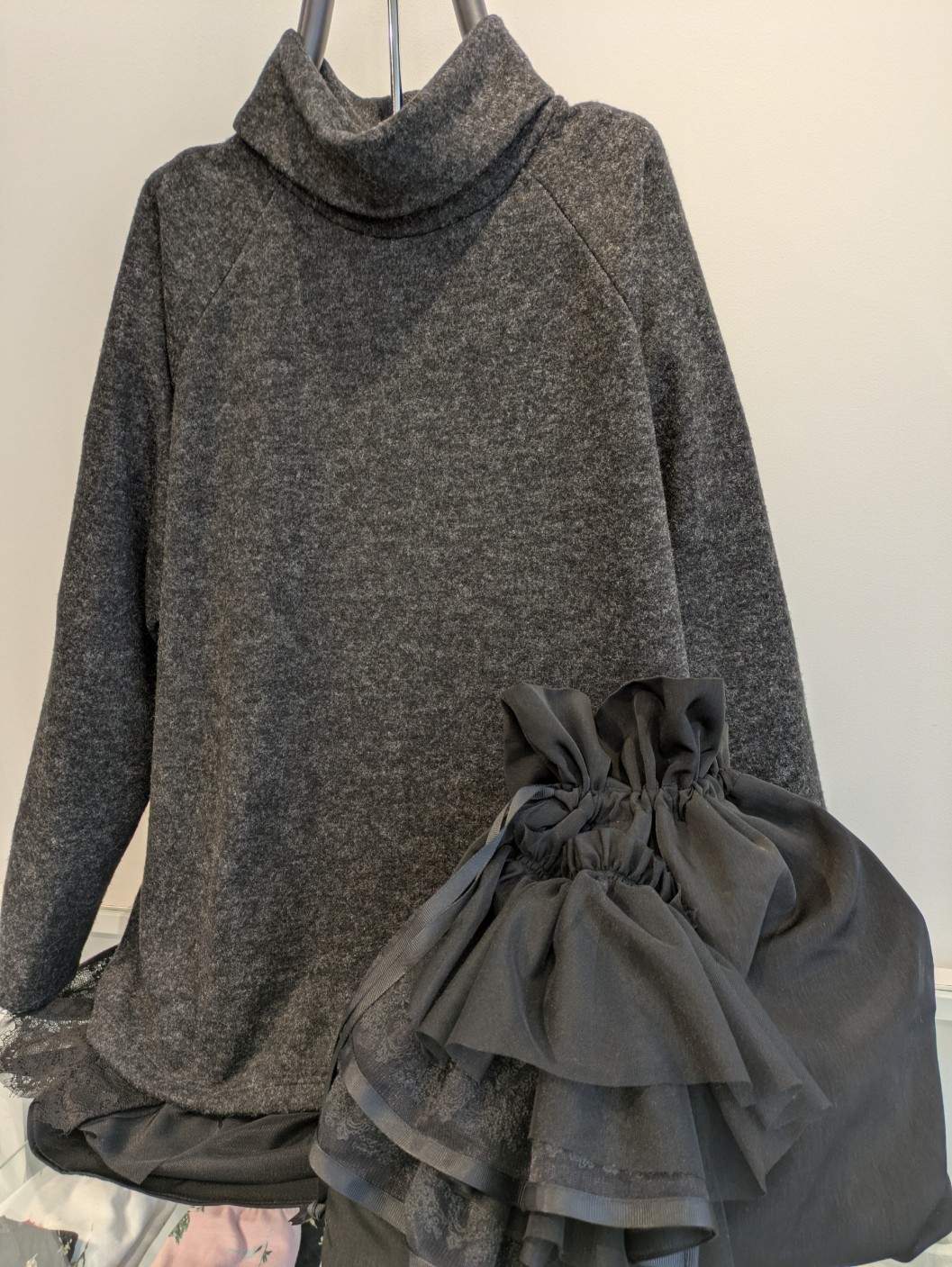 裾にかけてレース生地がレイヤードされているように見えるデザインニットです