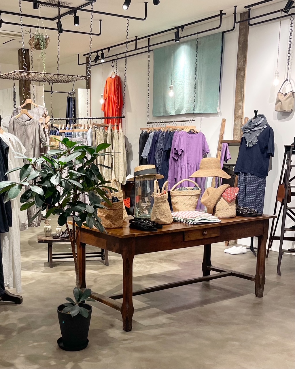 毎年人気のラフィア素材のカゴバッグや天然石ビーズのアクセサリーも展開しサマーフェアならではの小物も取り揃えておりますので、是非この機会をお見逃しなく!!