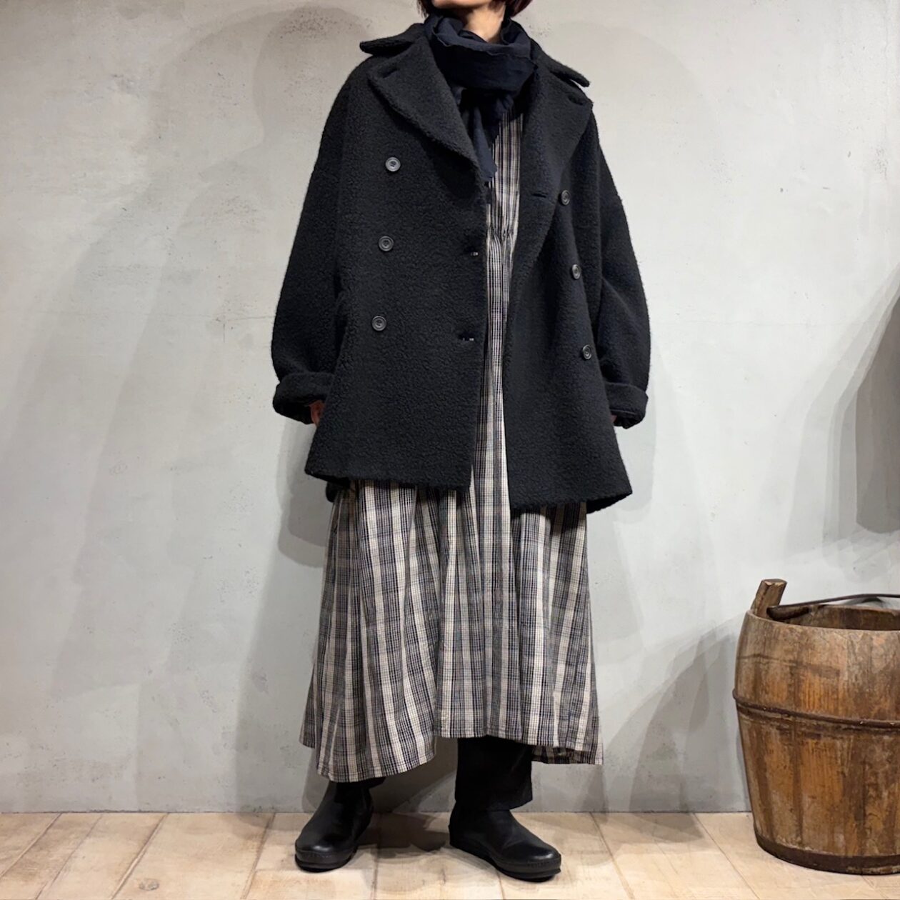 リサイクルウールを使用したブークレを少し圧縮したような素材感のコート🧥
