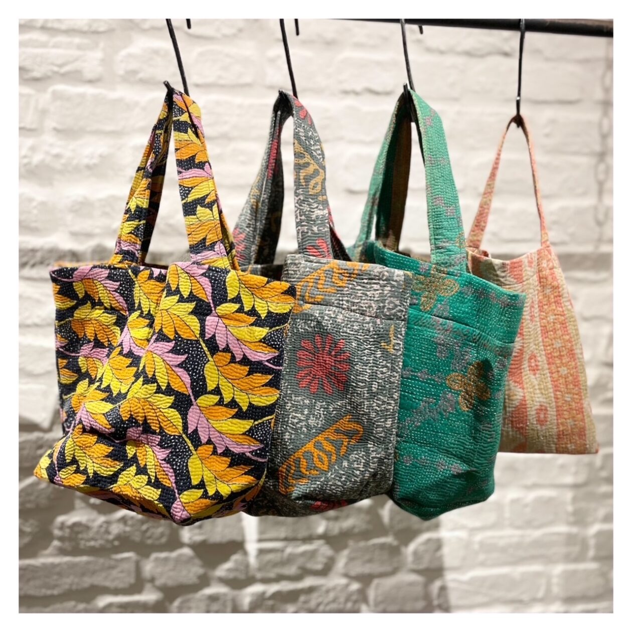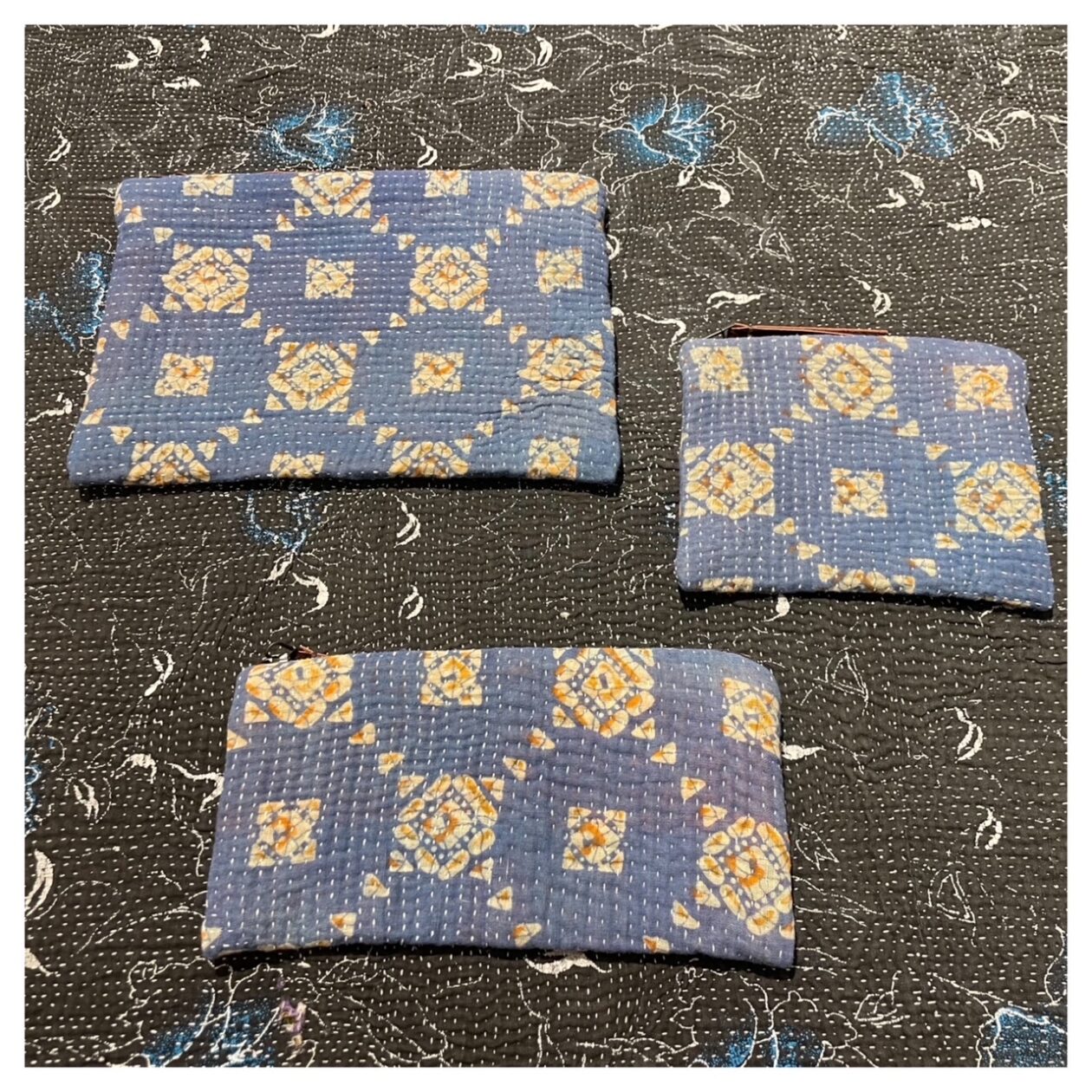 私たちは、状態の良いセミヴィンテージのカンタをインドで直接買い付け、弊社のアトリエにて、バッグやポーチなどのアイテムへと仕立てています🚶