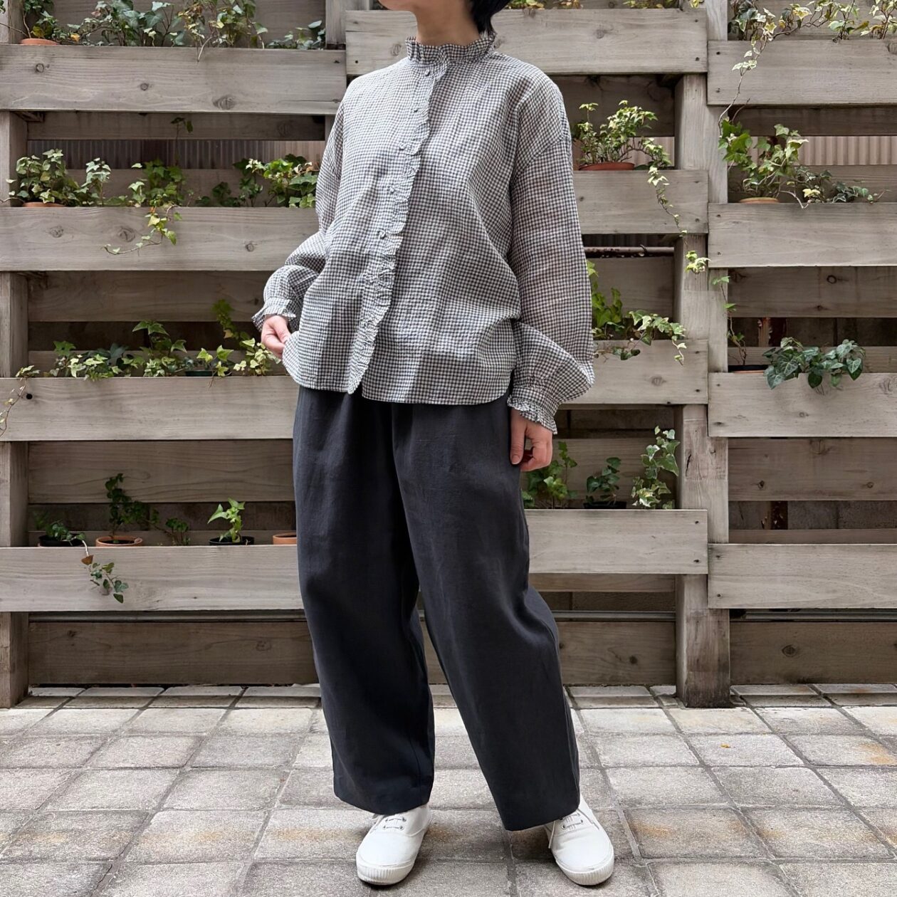 細かいギンガムチェックが柄を主張しすぎず上品な印象に✨