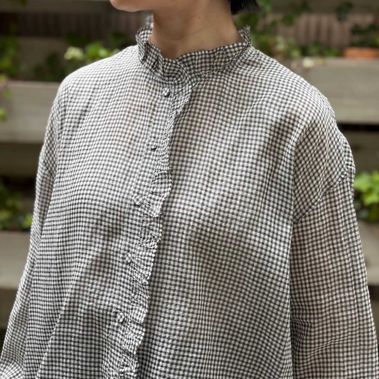 ◾️HANDWOVEN COTTON SILK GINGHAM CHECK FRILL COLLAR SHIRTS