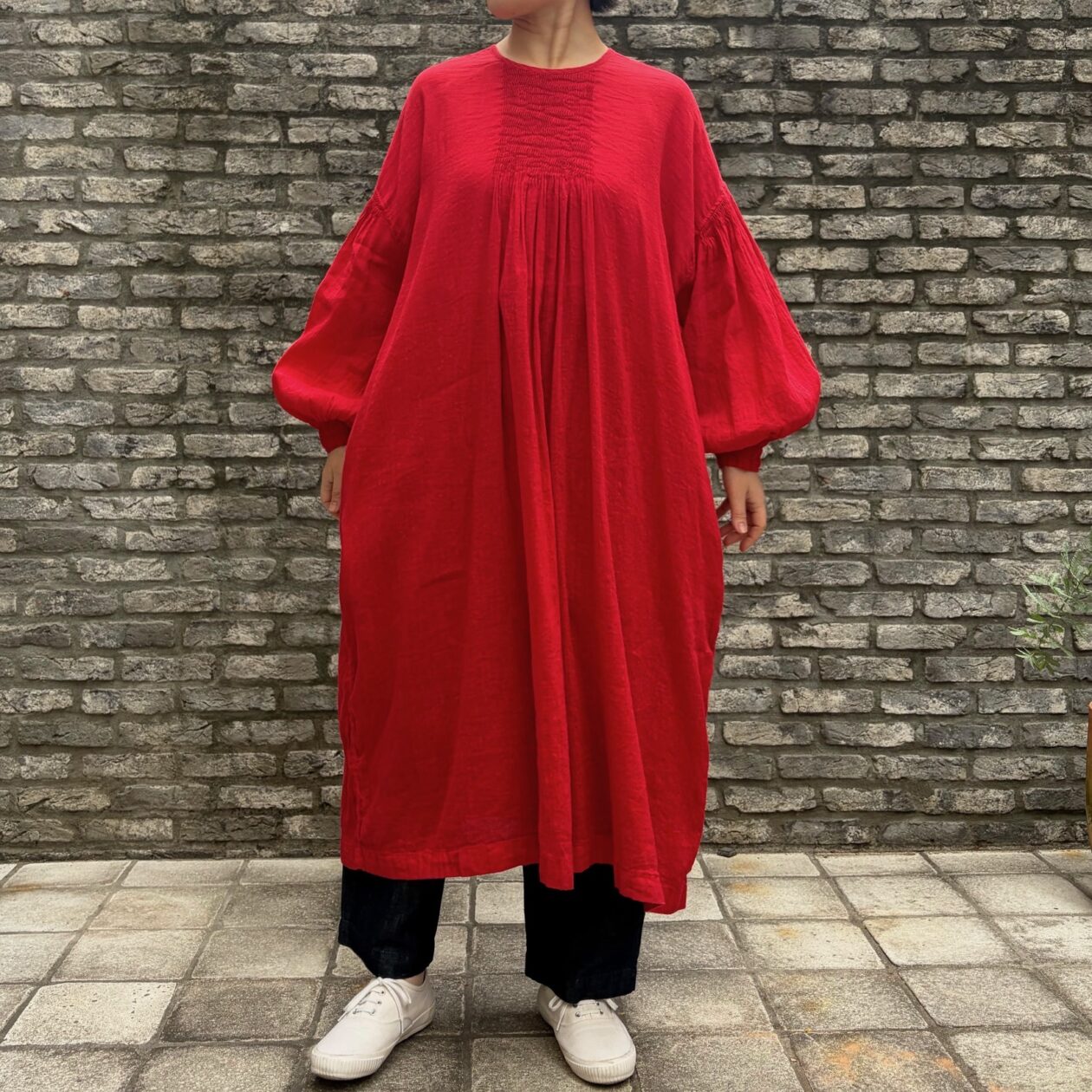 繊細なギャザーから生み出されるボリュームのある袖部分が、フェミニンさを演出しつつも、広がりのない落ち感のある素材が上品な佇まいのワンピースに仕上がりました💐