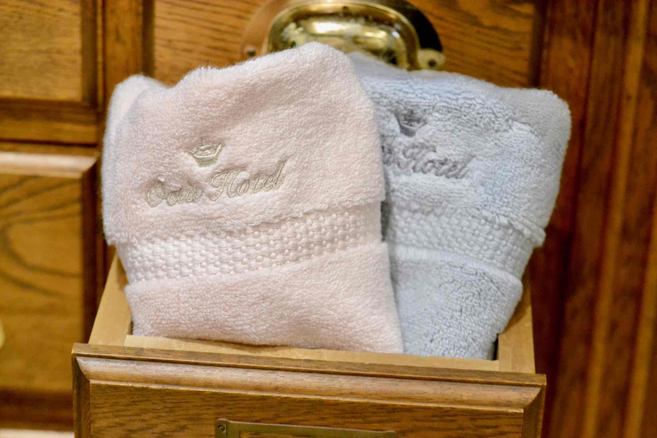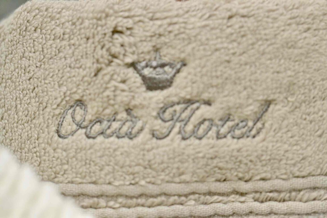 男女問わないユニセックスな色使いとオクタホテルオリジナルのロゴ刺繍をあしらった特別なタオル。