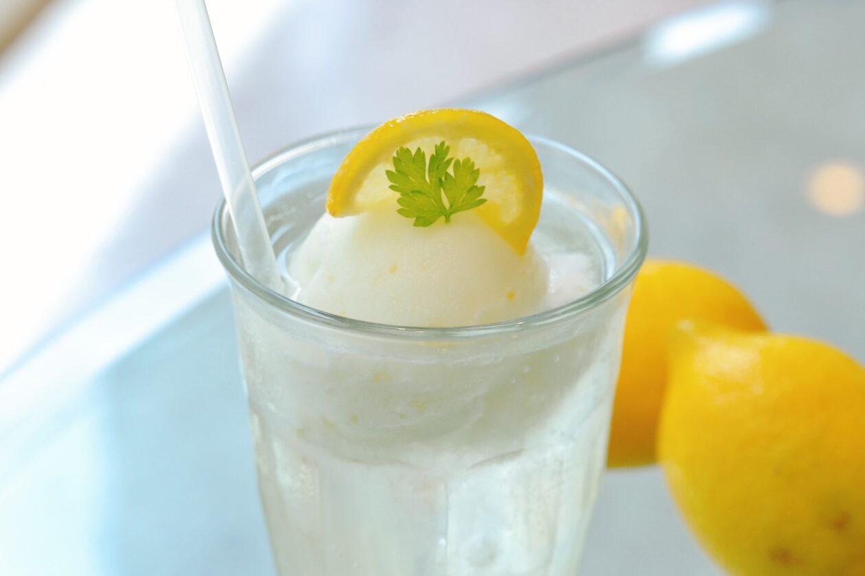 ビタミンたっぷりの爽やかなレモンのソルベ(シャーベット)フロートをご紹介いたします★