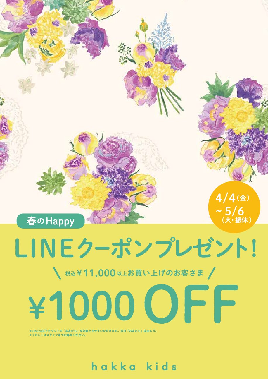 4/4(金)~5/6(火・振)の期間中、1会計税込¥11,000以上お買い上げでご利用いただける