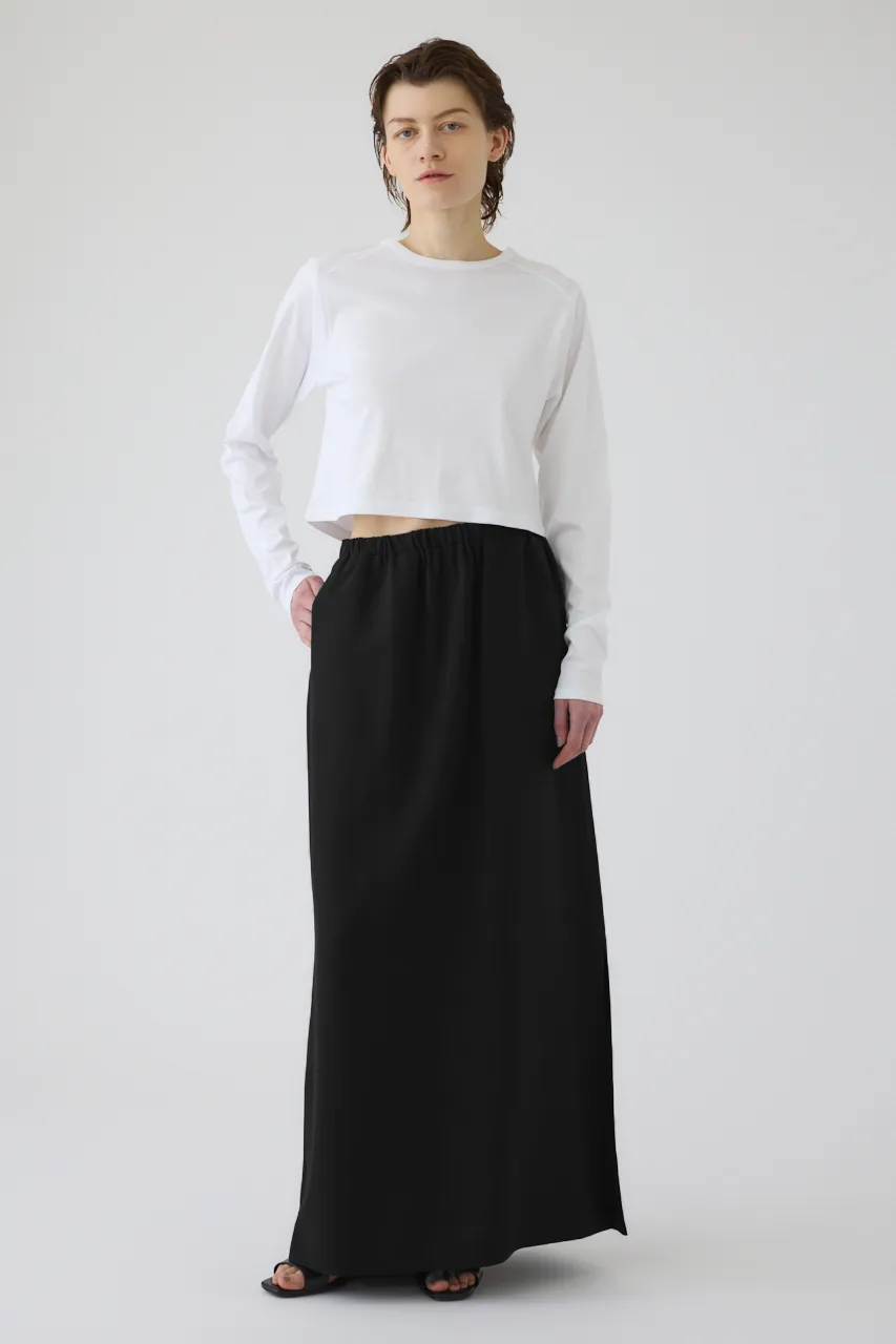 落ち感のある生地が脚のラインを拾わず美しく見せ、スタイルアップ効果を発揮します。