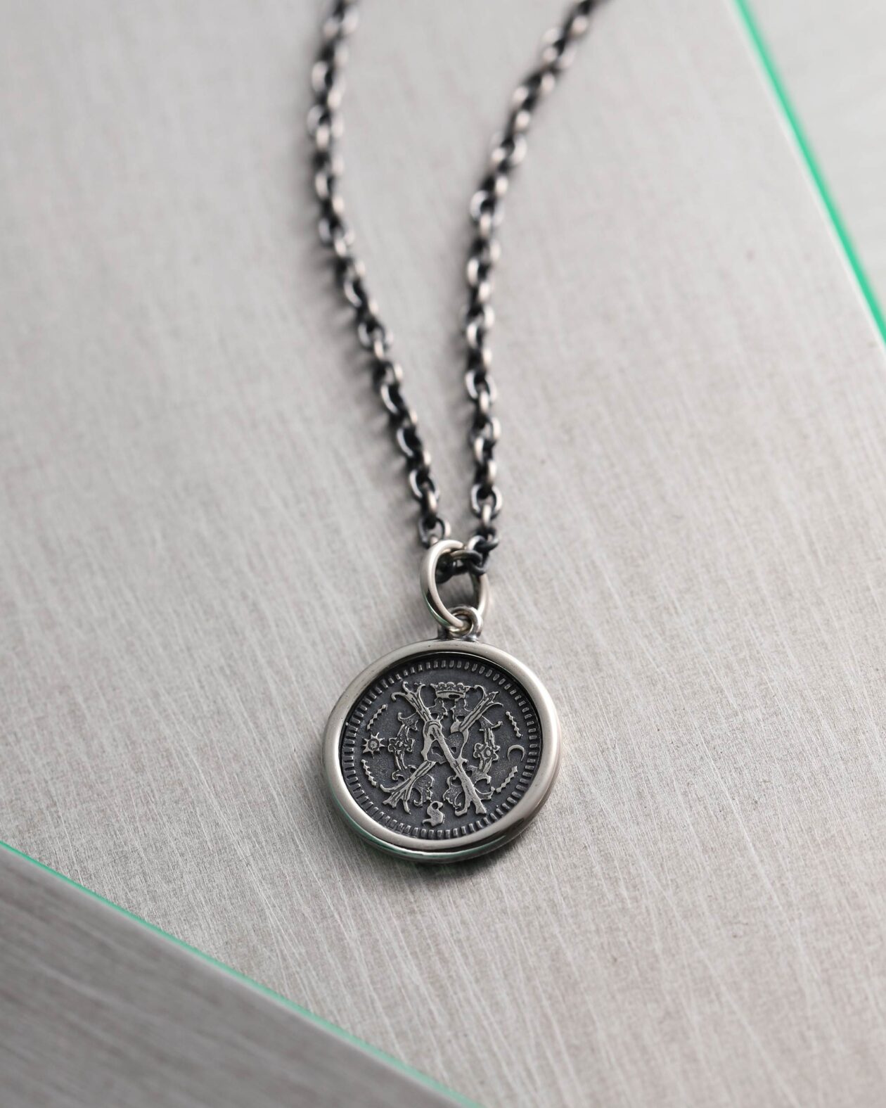このコインネックレスとともに力強いエネルギーを携えて、輝かしい栄光や幸運を引き寄せながらポジティブな日々が訪れることを願ってデザインされています。お守りのように着けていただけるこちらのコインは、ギフトにもおすすめのアイテムです。
