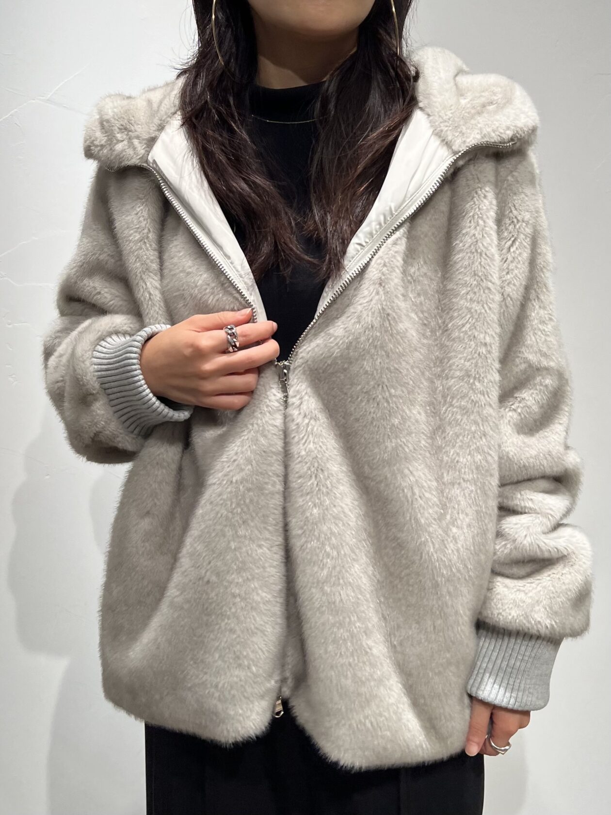ダブルジップ仕様で着こなしかたでボリューム感を抑えてくれます。