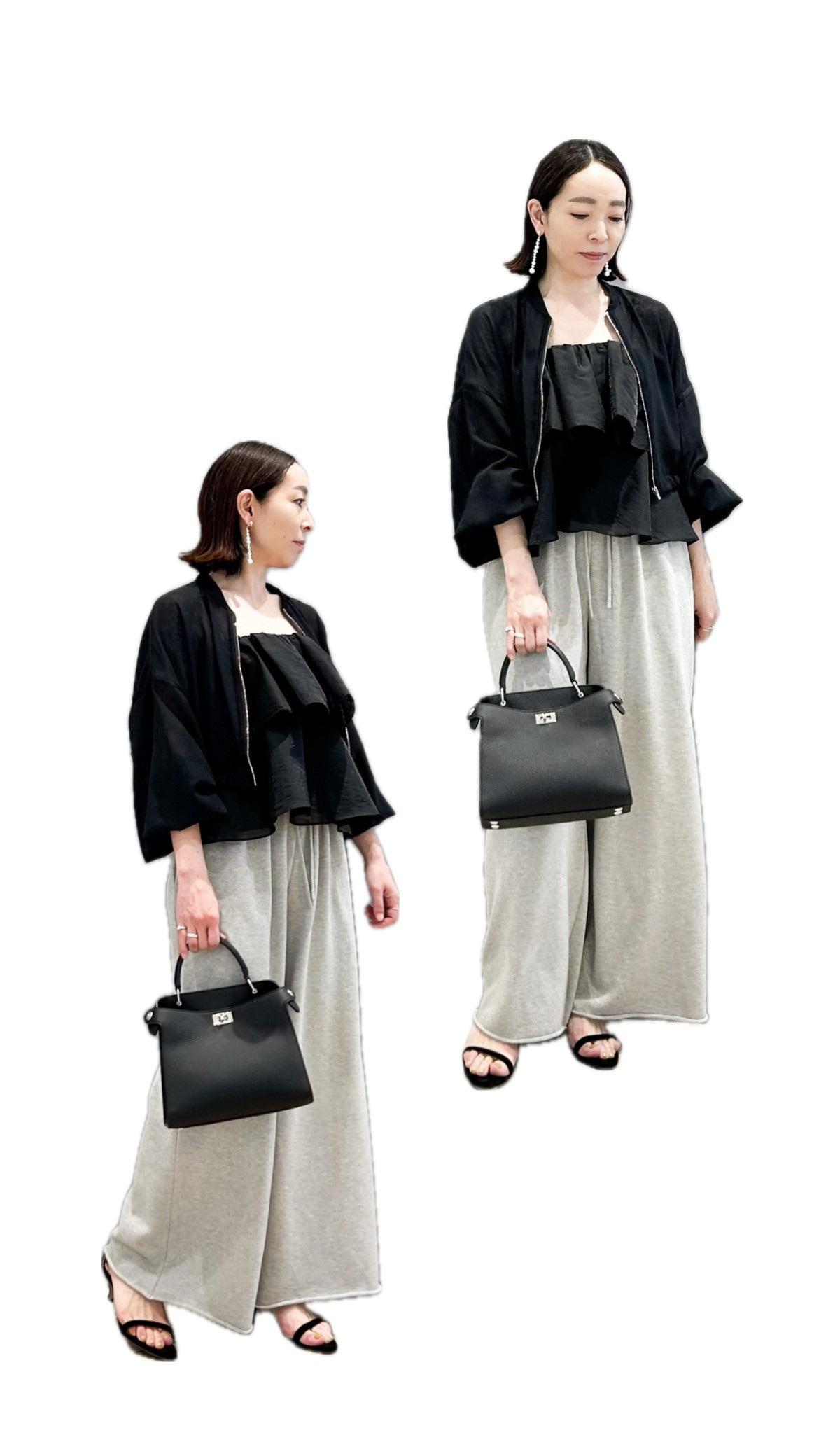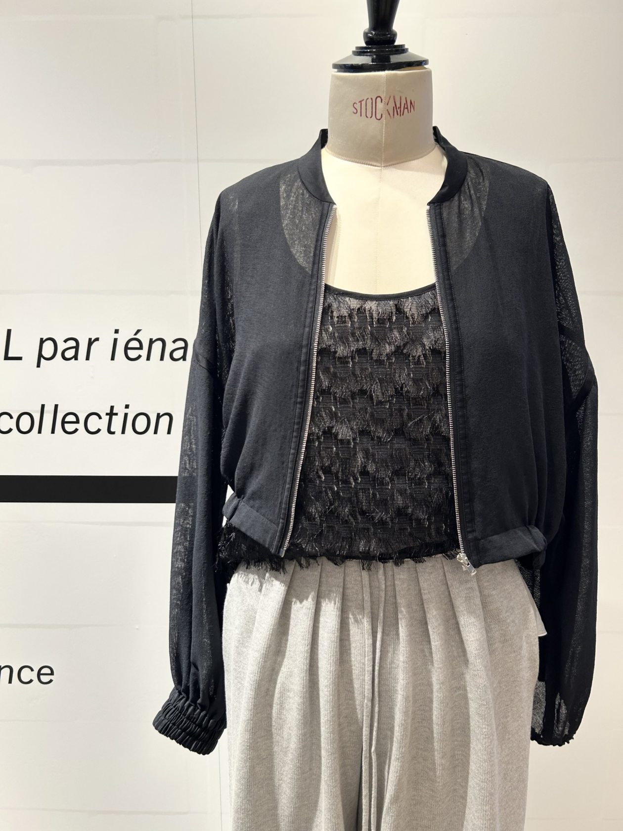 ショート丈でコンパクトなサイズ感なので、ファスナーを閉めてシアートップス感覚でも着こなせます。