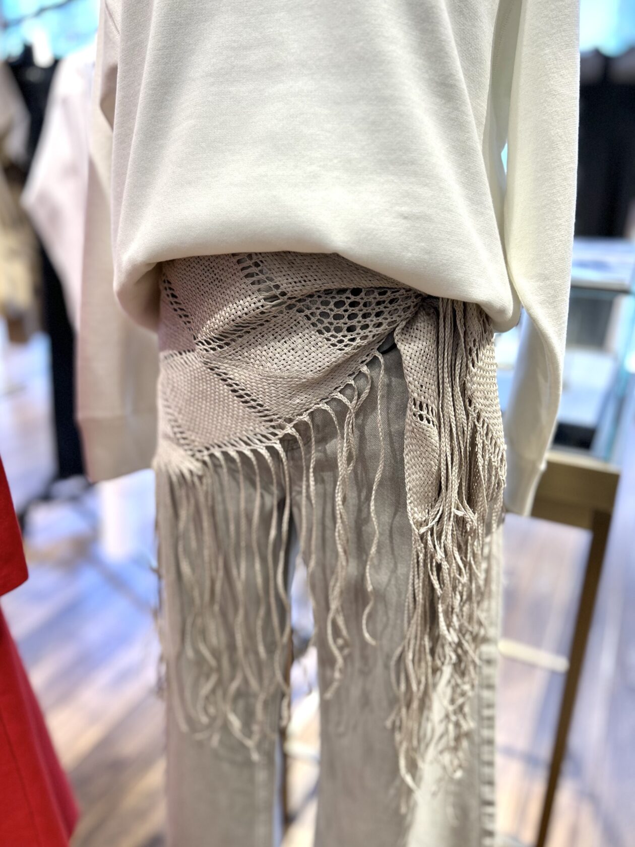 ニュアンスカラーのシンプルな装いに新しい表情をプラス。