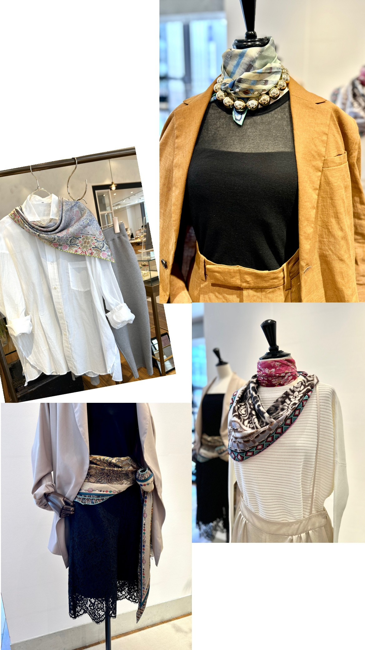 スカーフやアクセサリーを添えるだけで、ぐっと洗練された印象へ導いてくれます。